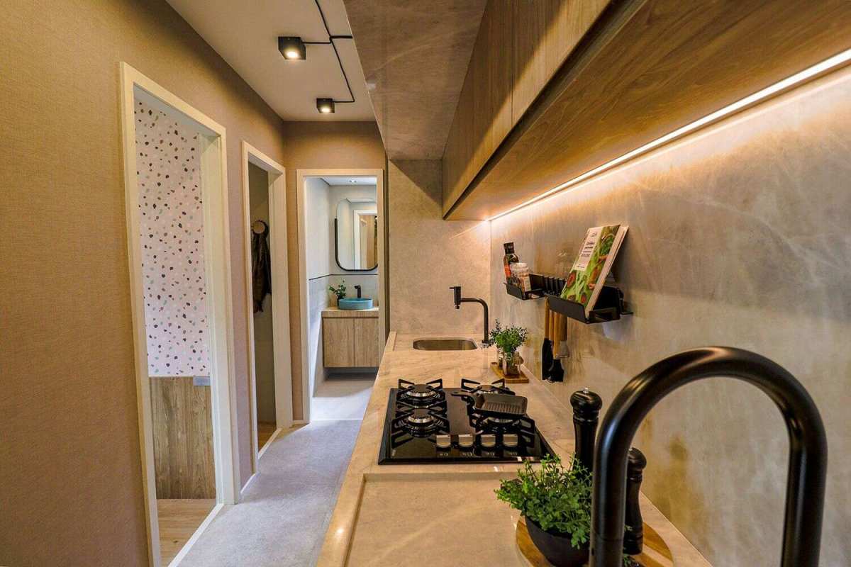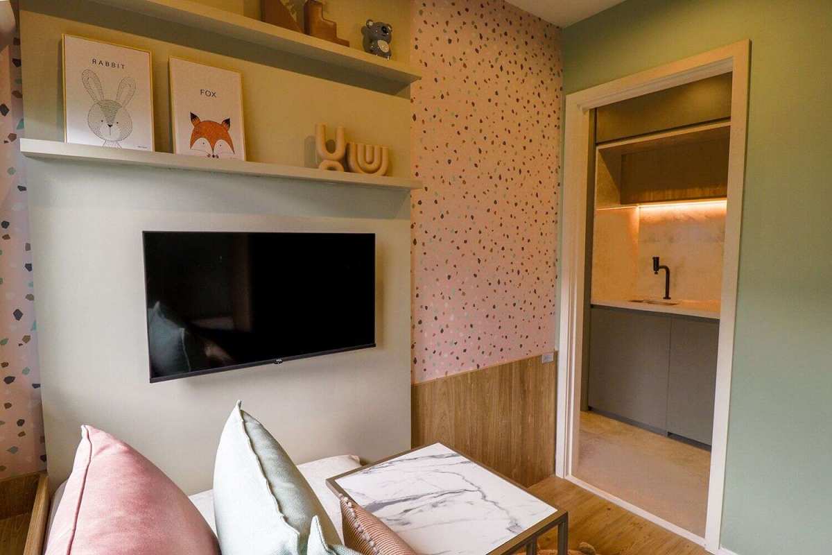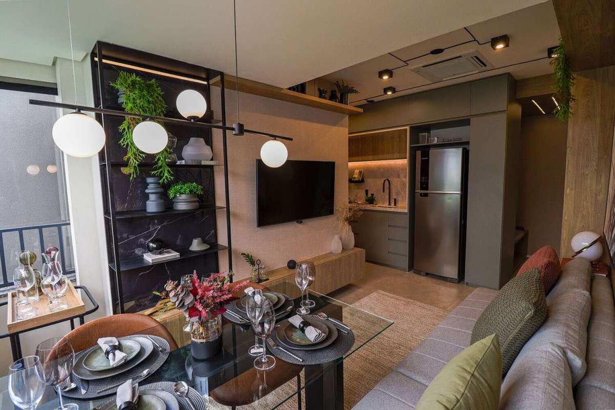 As imagens do apartamento refere-se ao modelo decorado de 1 dormitórios e não a unidade que esta a venda que vem vazia como entregue no memorial descritivo.